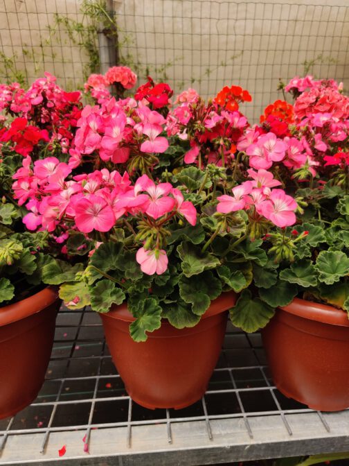 גרניום זקוף פורח בעציץ קמור 30 ס”מ