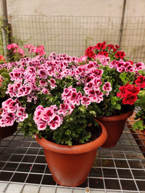 גרנים זקוף פורח בעציץ קמור 30 ס”מ.